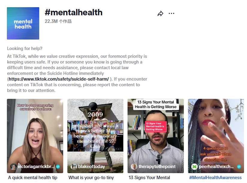 在TikTok上,#mentalhealth话题的浏览量更是超过了1971亿次!