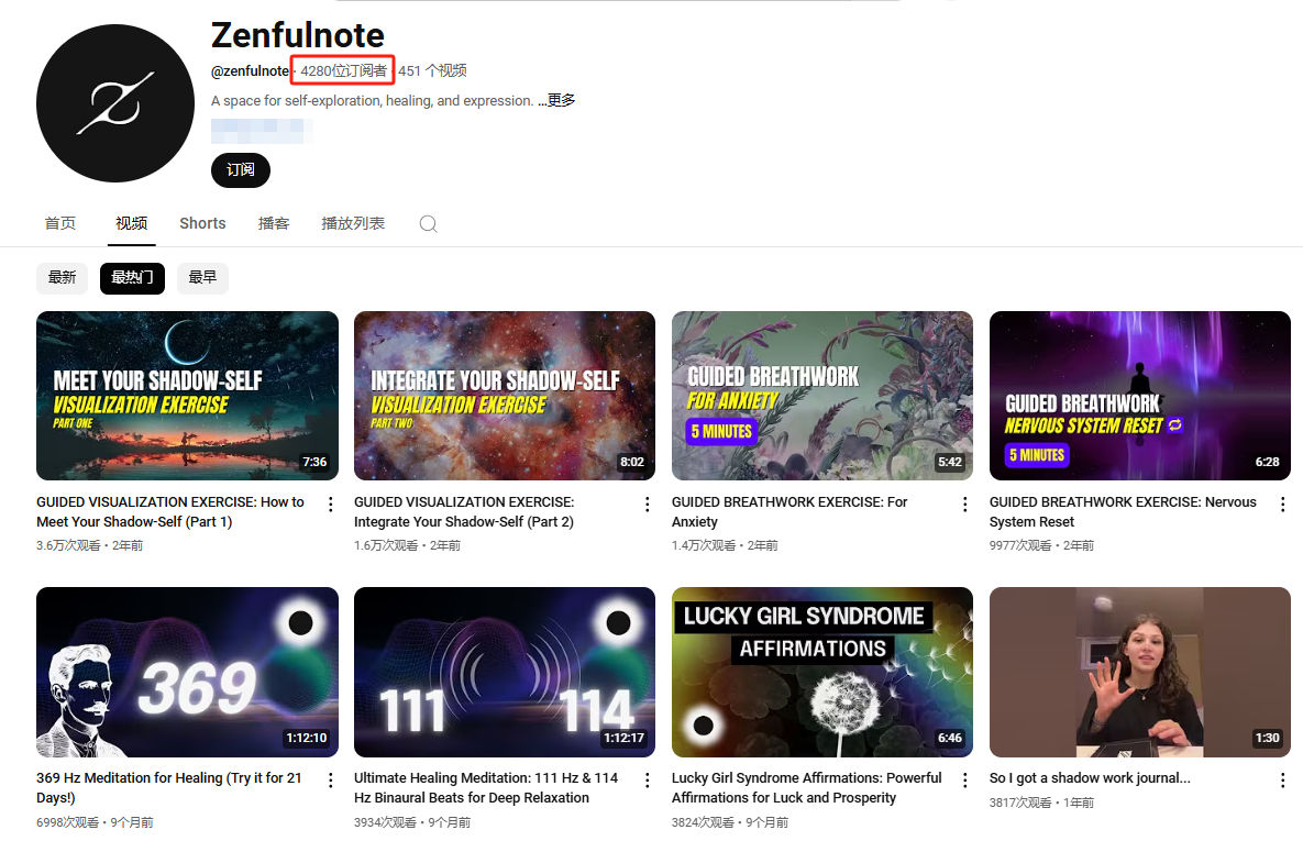 与其他平台侧重短平快内容不同,zenfulnote在YouTube上专注打造深度疗愈场景。