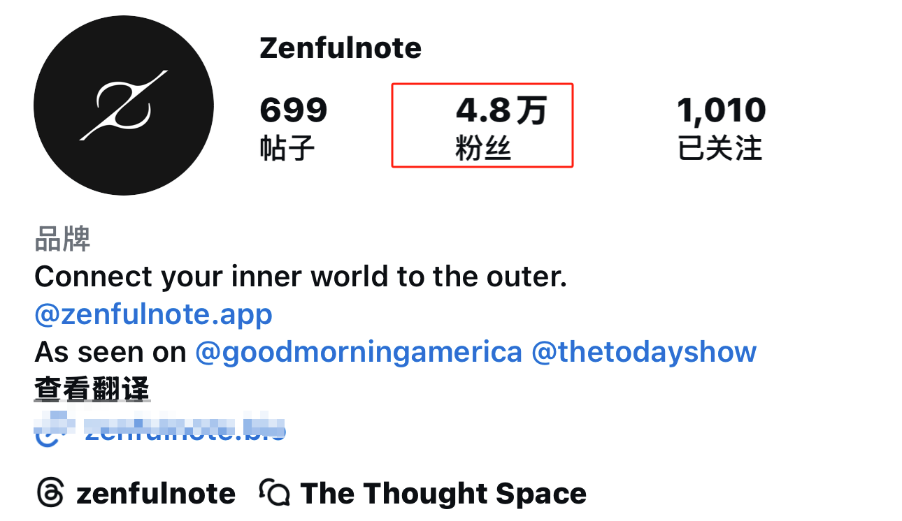 作为TikTok内容的分发延伸,其Instagram账号@zenfulnote目前也积累了4.8万粉丝,做得同样不错。