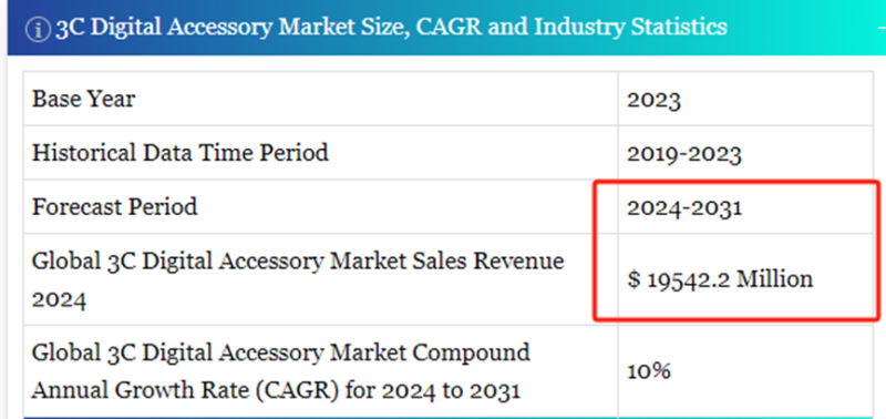 根据第三方平台显示,全球3C数码配件市场在2023年已突破195.42亿美元,预计到2031年销售额将达到380.82亿美元。这一庞大的市场规模背后,是消费者需求的深刻变化,他们不再满足于“保护手机”的基础功能,而是追求个性表达和场景适配。