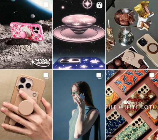 在Instagram上,PopSockets品牌则采取了另一种策略,通过高颜值的视觉内容强化品牌形象,进一步扩大其影响力。