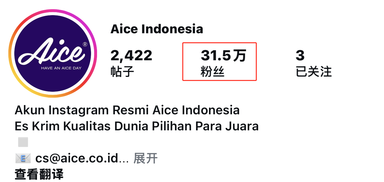 在Instagram上,艾雪的官方账号@Aice Indonesia吸引了31.5万粉丝。