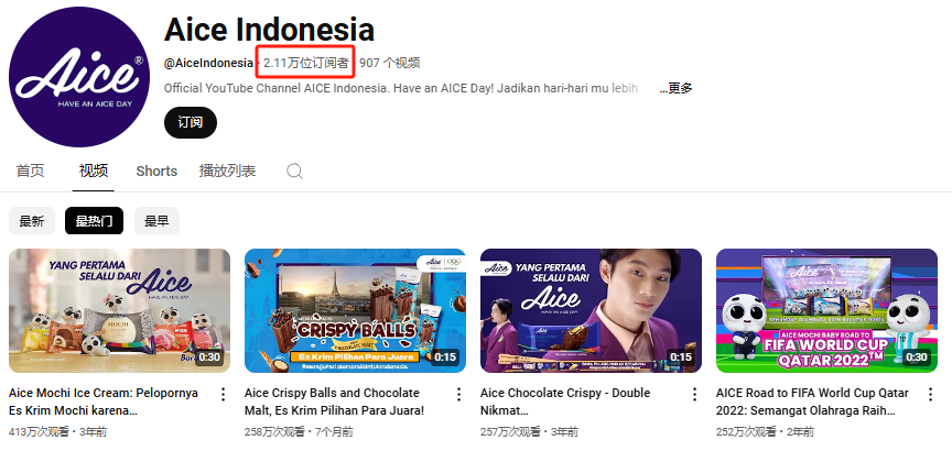 而在YouTube上,艾雪的官方账号@Aice Indonesia虽然只有2.11万订阅,但内容设计很聪明。