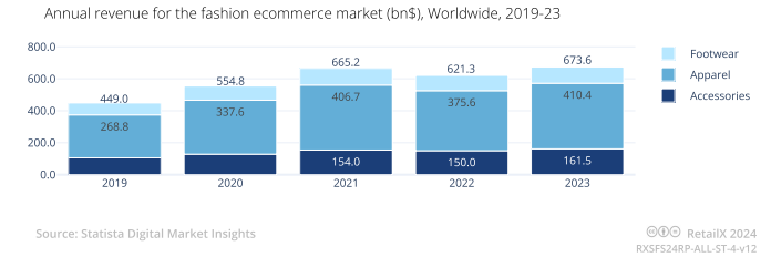 近年来,全球服装市场持续扩容。据Statista数据,2023年全球服装市场规模已达6736亿美元,未来几年,有望保持蓬勃发展的态势。