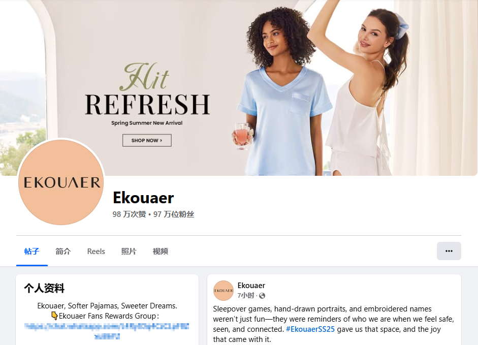 EKOUAER品牌的Facebook官方认证账号的粉丝量,是所有社媒平台中最多的,有97万位粉丝在关注。