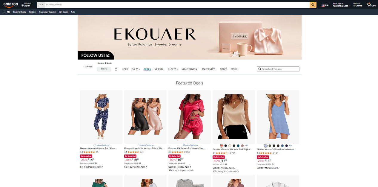 在亚马逊上,该品牌以泛SKU策略覆盖主流需求,有睡衣、内衣、运动服等多个品类,还通过FBA(亚马逊物流服务)保障配送时效,并利用平台流量红利积累原始用户。