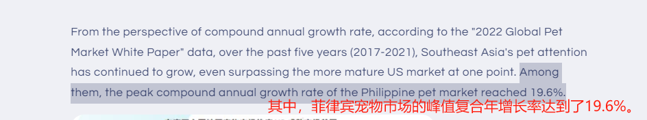 然而随着东南亚经济水平整体提升,市场格局开始发生变化。2021至2023年间,菲律宾养宠人群快速扩大,当地宠物市场复合年增长率一度飙升至19.6%,越来越多的宠物主开始追求更高品质的产品。