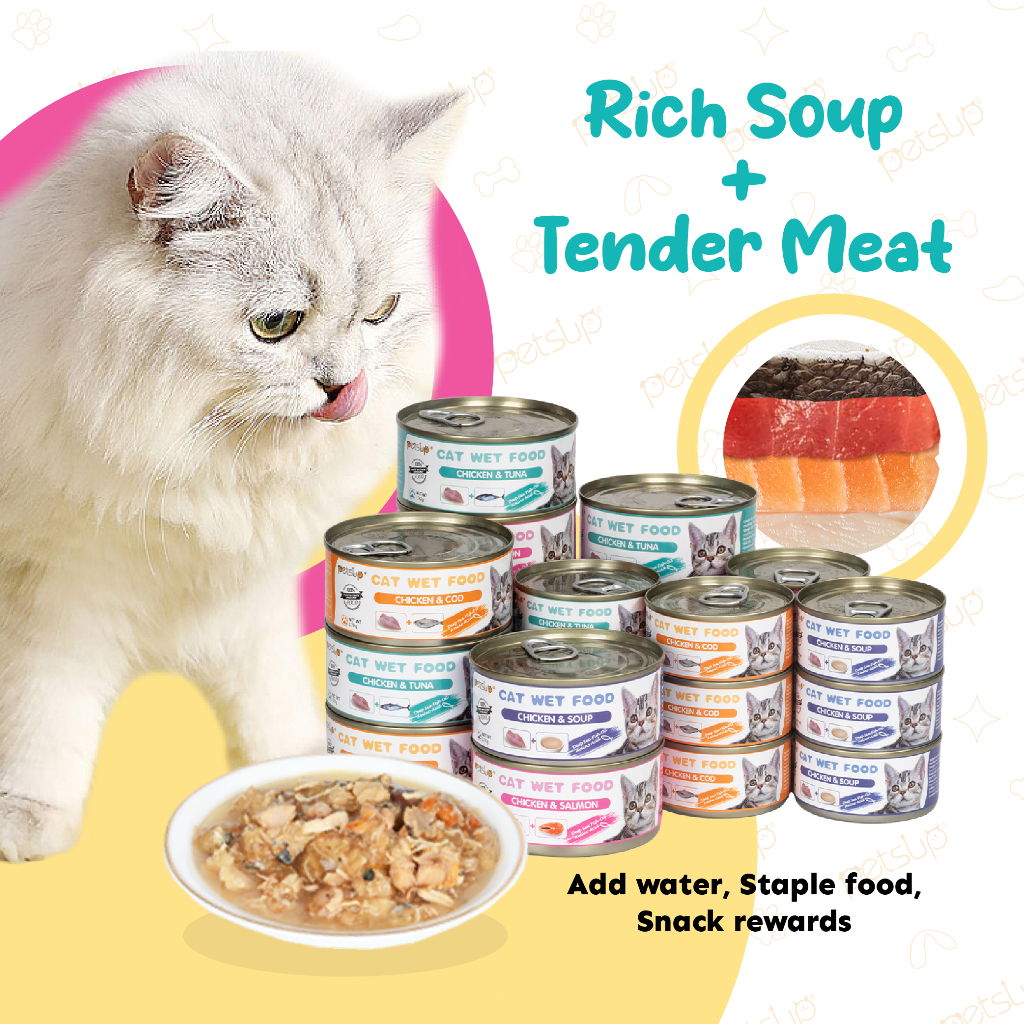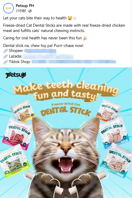 当时菲律宾市面上的宠物罐头多为啫喱状肉泥,Petsup反其道推出透明包装的“可见原料”汤罐,直击猫咪补水需求,用真实的肉块和汤汁展示说服消费者,同时拉高客单价,精准踩中消费升级节点。