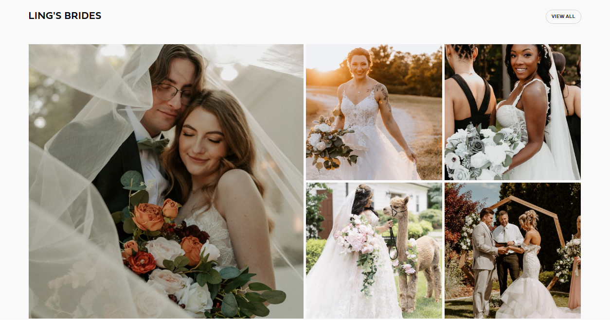 最打动人的是网站上的"Ling's Bride"(玲的新娘)板块。这里展示的都是真实顾客的婚礼现场照片,没有刻意摆拍,只有自然真实的场景。通过这些用户自发分享的案例,潜在顾客能够直观地看到产品在实际使用中的效果,这种真实的展示方式比任何广告都更有说服力。