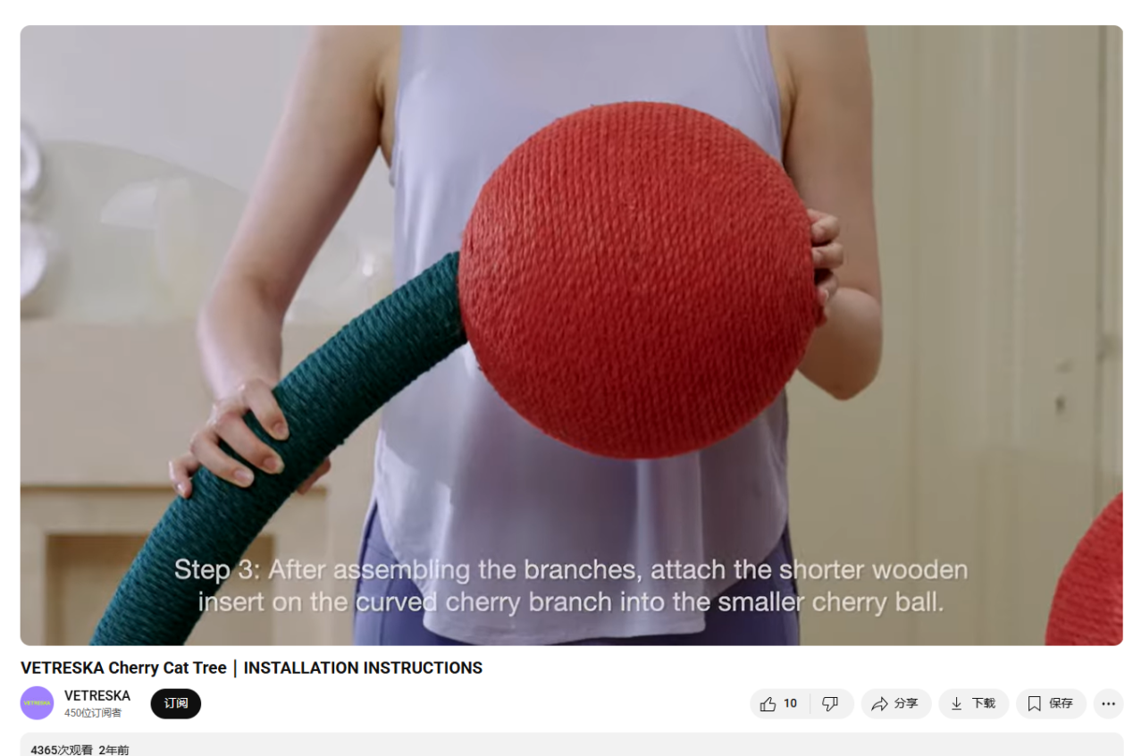 在YouTube渠道,Vetreska品牌则侧重于解决用户的决策疑虑。品牌会发布产品组装教程、使用测评等实用内容,例如详细演示如何将可拆卸猫窝改造成不同造型。这种“先教育,后销售”的策略,也帮助品牌降低了新用户的尝试门槛。