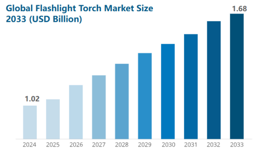 根据Business Research数据,2024年全球手电筒市场规模将达到10.2亿美元,到2033年预计将达到16.8亿美元。