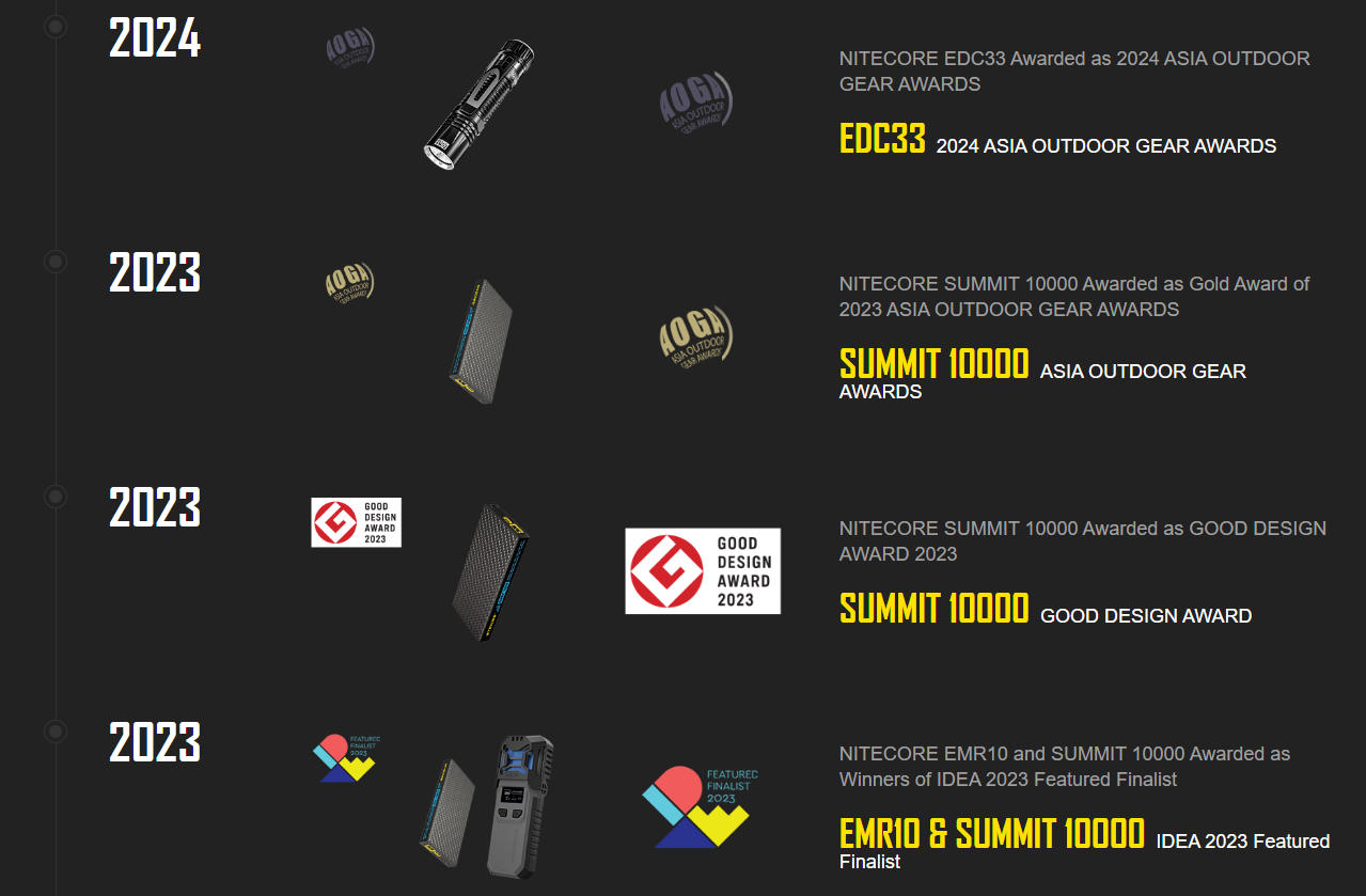 如今,Nitecore已拥有100多项专利,并成为首个获得德国iF、红点等全球顶级设计奖项大满贯的手电筒品牌。从一个极客团队的小工作室,到产品登上好莱坞大荧幕的国际品牌,Nitecore用18年时间证明了中国制造也能在专业领域做到世界领先。