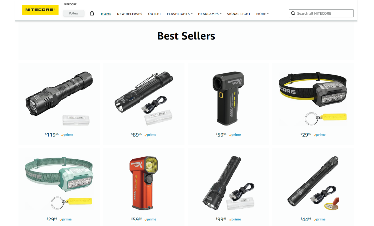 与此同时,Nitecore在亚马逊平台的表现同样亮眼。通过优化产品页面、完善售后服务和参与平台大促,该品牌多款产品登上Best Seller榜单,部分单品月销售额突破十万美元,平均评分保持在4.5分以上。
