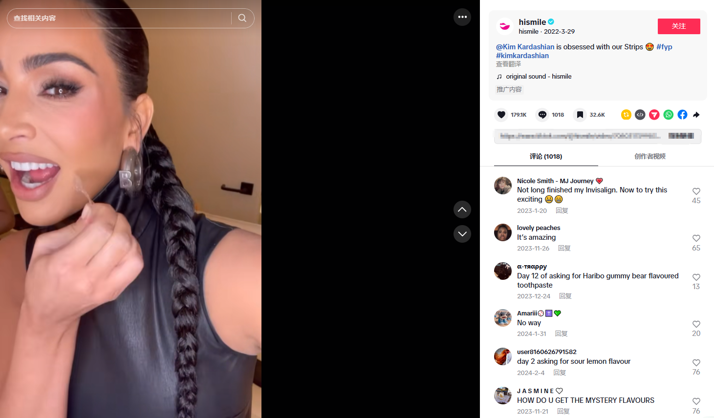 牙齿美白品牌HiSmile将这一策略发挥到极致,在与达人@Kim Kardashian的合作中,一条展示美白效果的测评视频获得了590万播放,这种直观的视觉冲击在大脑中形成认知锚点。制作对比内容时,要确保变化足够明显,节奏紧凑有力,最好能在开头几秒就呈现核心对比点,这样才能最大化留住用户的注意力。