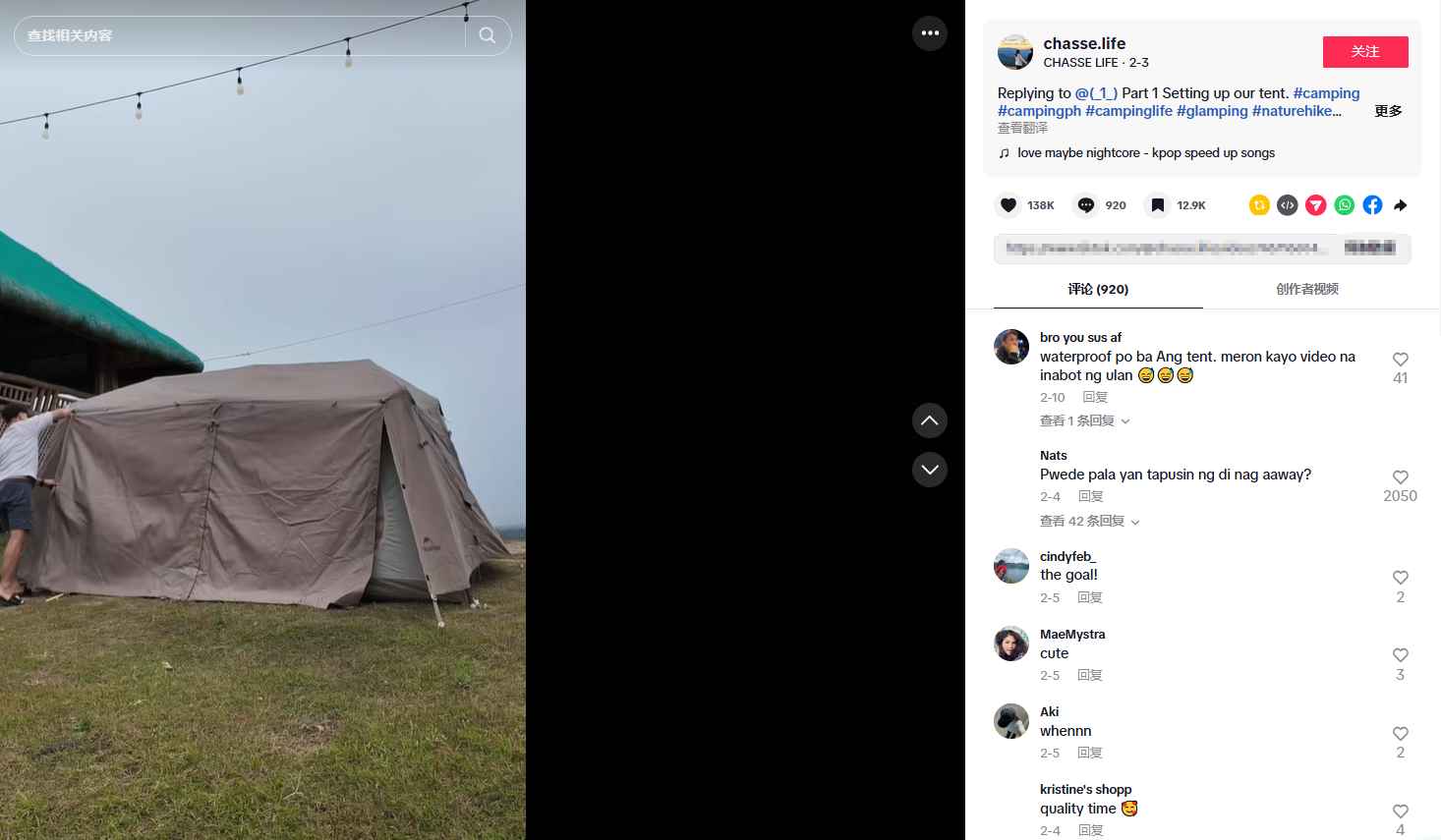 户外品牌挪客通过展示帐篷搭建、户外装备使用等实用内容,成功激活了用户的这种深层心理机制。他们拍摄的星空帐篷视频获得96万播放,与@chasse.life合作的露营教程更达到460万播放。制作实用内容时,要聚焦用户真实需求,采用"问题-解决方案"的结构,确保信息清晰易懂,最好能让用户在观看后立即产生"这个很有用"的认知。