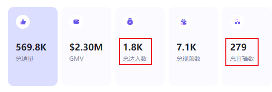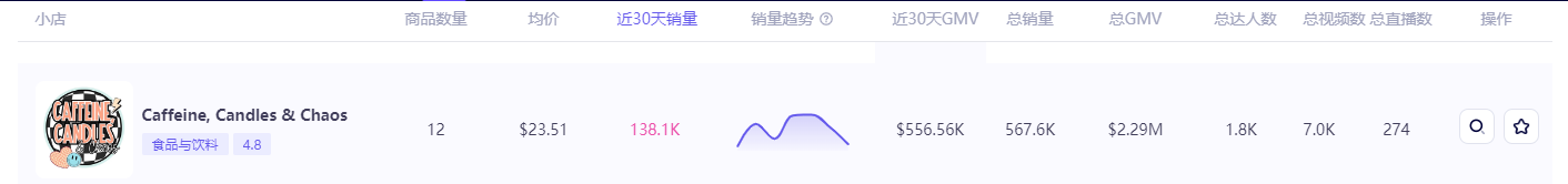 从TikTok第三方数据平台echotik可以看到,Caffeine, Candles & Chaos品牌合作的达人总数为1800人,总直播数为279场。