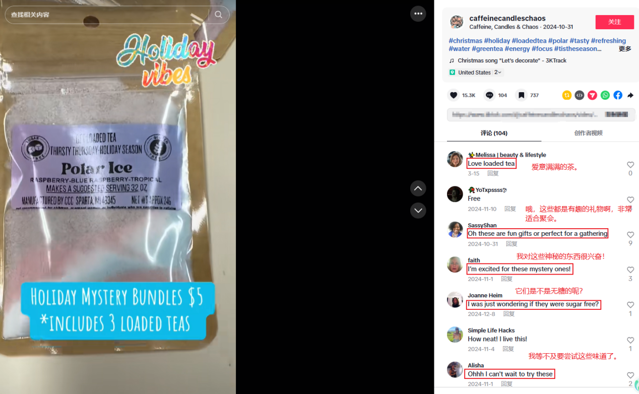 这类内容看似朴素,却因真实性和视觉诱惑力获得高互动,用户纷纷留言:“爱意满满的茶。”“哦,这些都是有趣的礼物啊,非常适合聚会。”“我对这些神秘的东西很兴奋!”“我喜欢这样的!”“我等不及要尝试这些味道了。”