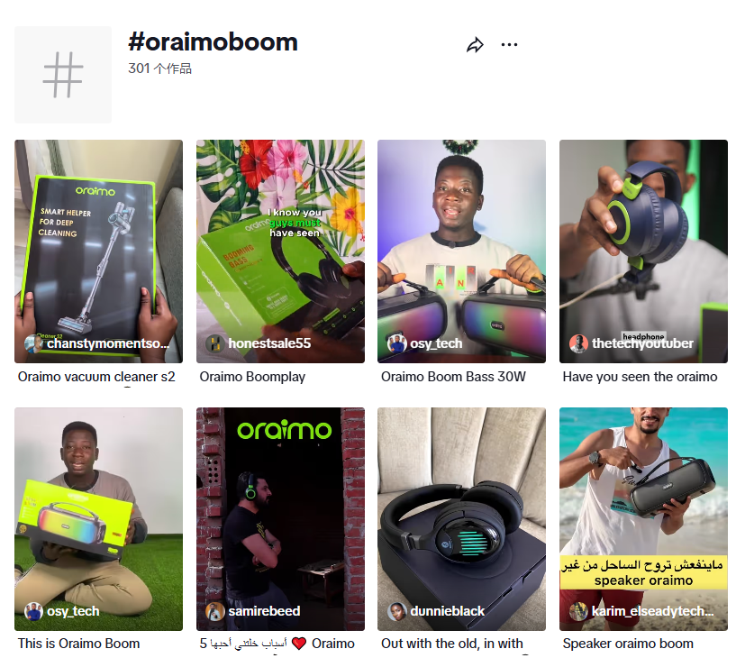 这套投放策略在肯尼亚市场取得了显著成效。在推广Boom Speaker的活动中,相关话题标签一个月内就获得了500万的浏览量,这充分说明,通过将产品融入潮流内容,Oraimo成功吸引了大量用户的关注,有效提升了品牌知名度。