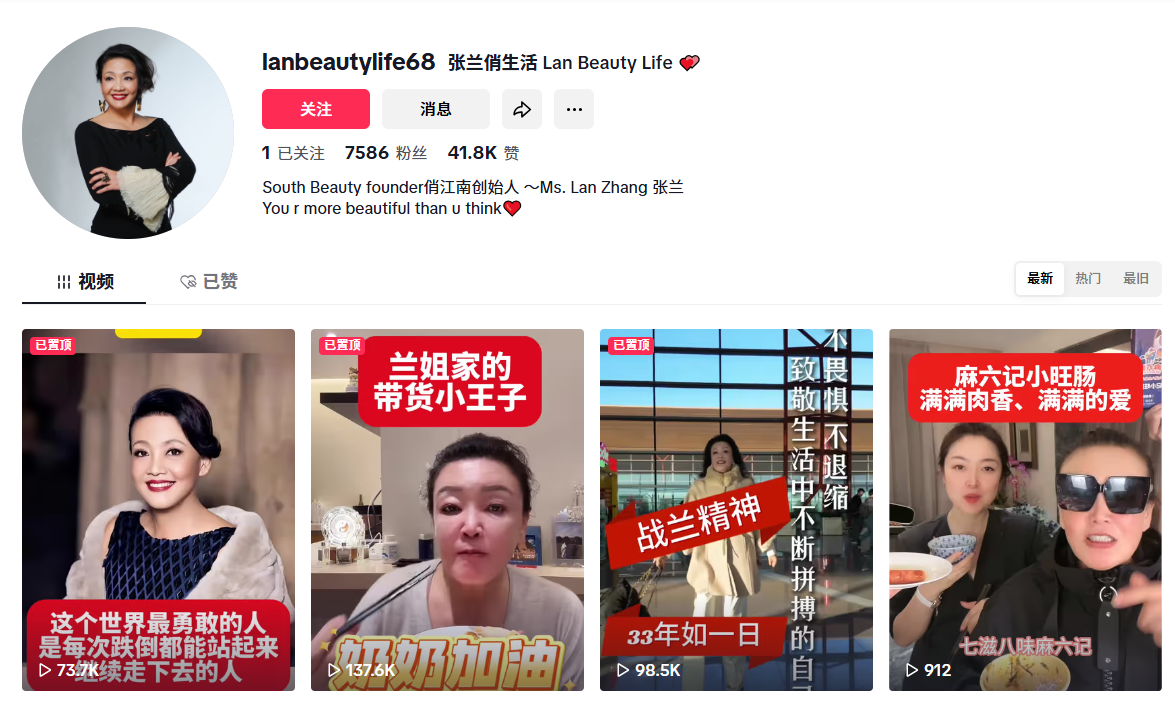 张兰在2025年抖音账号被封后,24小时内转战TikTok,快速建立人设: