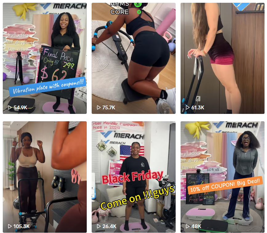 Merach推广一款腹部训练器时,没有直接展示产品功能,而是用“健身小白挑战30天马甲线”的系列短视频吸引眼球。视频中,素人用户每天记录训练过程,并通过Merach设备的数据反馈(如卡路里消耗)制造悬念。该系列首条视频播放量破50万,带动产品3天内售出2000+单。