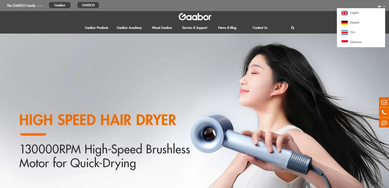 这种深度本土化还体现在细节上。Gaabor的官方独立站支持多语言版本,所有内容都由当地团队精心打磨,确保符合本地用语习惯。在重要节日如泰国泼水节期间,他们总能推出恰到好处的促销活动。正是这些用心的细节,让Gaabor逐步建立起吹风机、吸尘器等新产品线,持续扩大在东南亚市场的影响力。