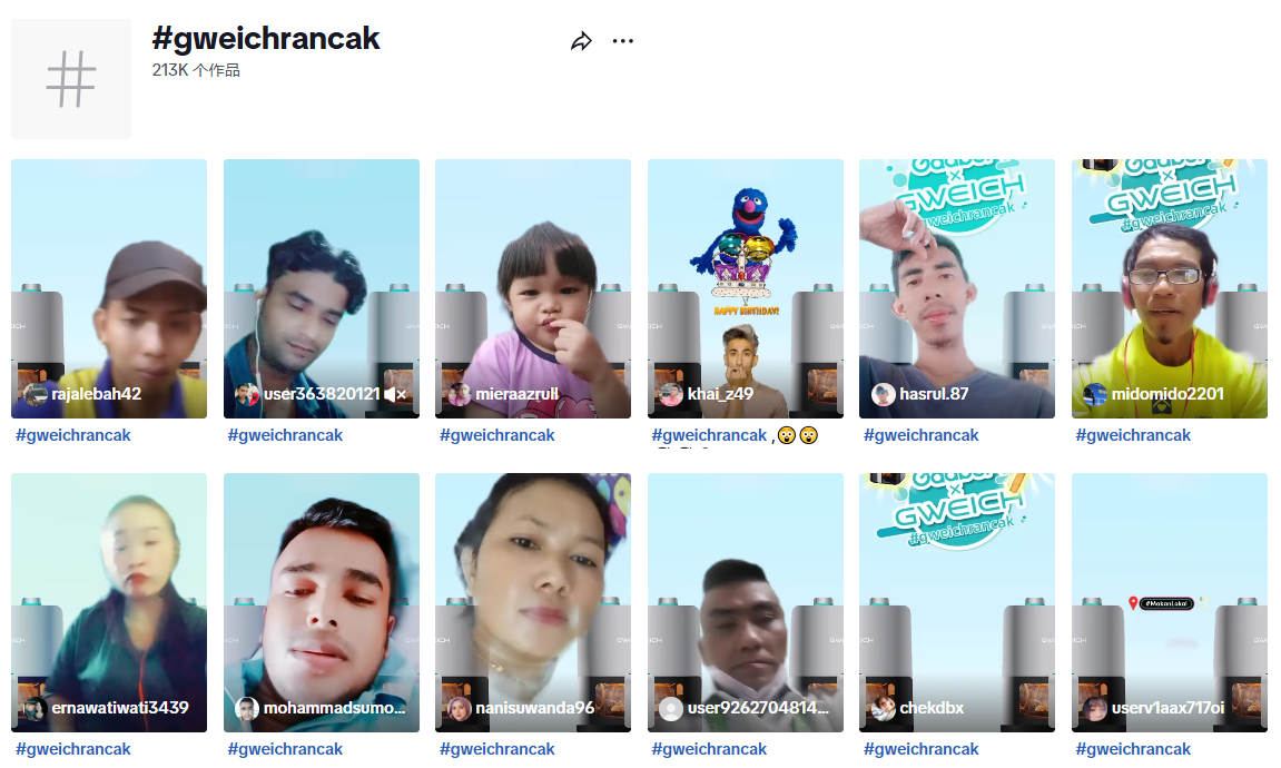 除了内容运营,Gaabor还擅长借助热点话题和挑战赛进行广告投放。比如在马来西亚的TikTok 9.9大促期间,他们结合当地热词“Rancak”和流行BGM《Look Around》,发起“GweichRancak”魔性舞蹈挑战赛,邀请4位头部达人参与。活动上线6天,曝光量突破2.8亿次,品牌账号涨粉近2万,并拿下直播带货全品类GMV第二名,销售转化超出预期50%。