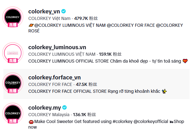 国产美妆品牌Colorkey在越南市场的策略就十分值得参考,该品牌一直保持着日更的频率,并且每条视频都用本土模特演示产品,话题标签#colorkey曝光量超2700万。通过高频互动,他们逐步构建“内容种草-直播转化-用户复购”的闭环。