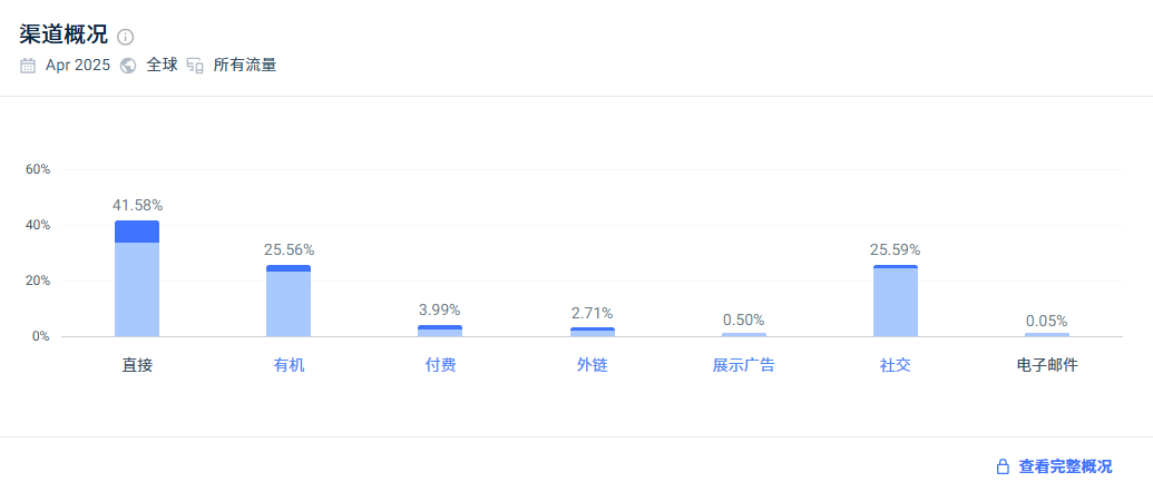 在流量结构上,其直接流量占比达41.58%,社交流量占比25.59%,可以看出该品牌与TikTok、Instagram的运营已然形成了联动效应。