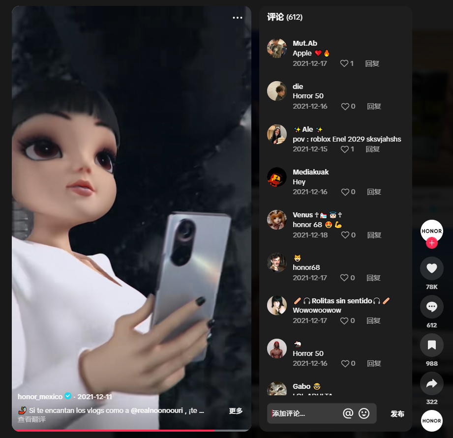 HONOR50 & 努努 图源:TikTok