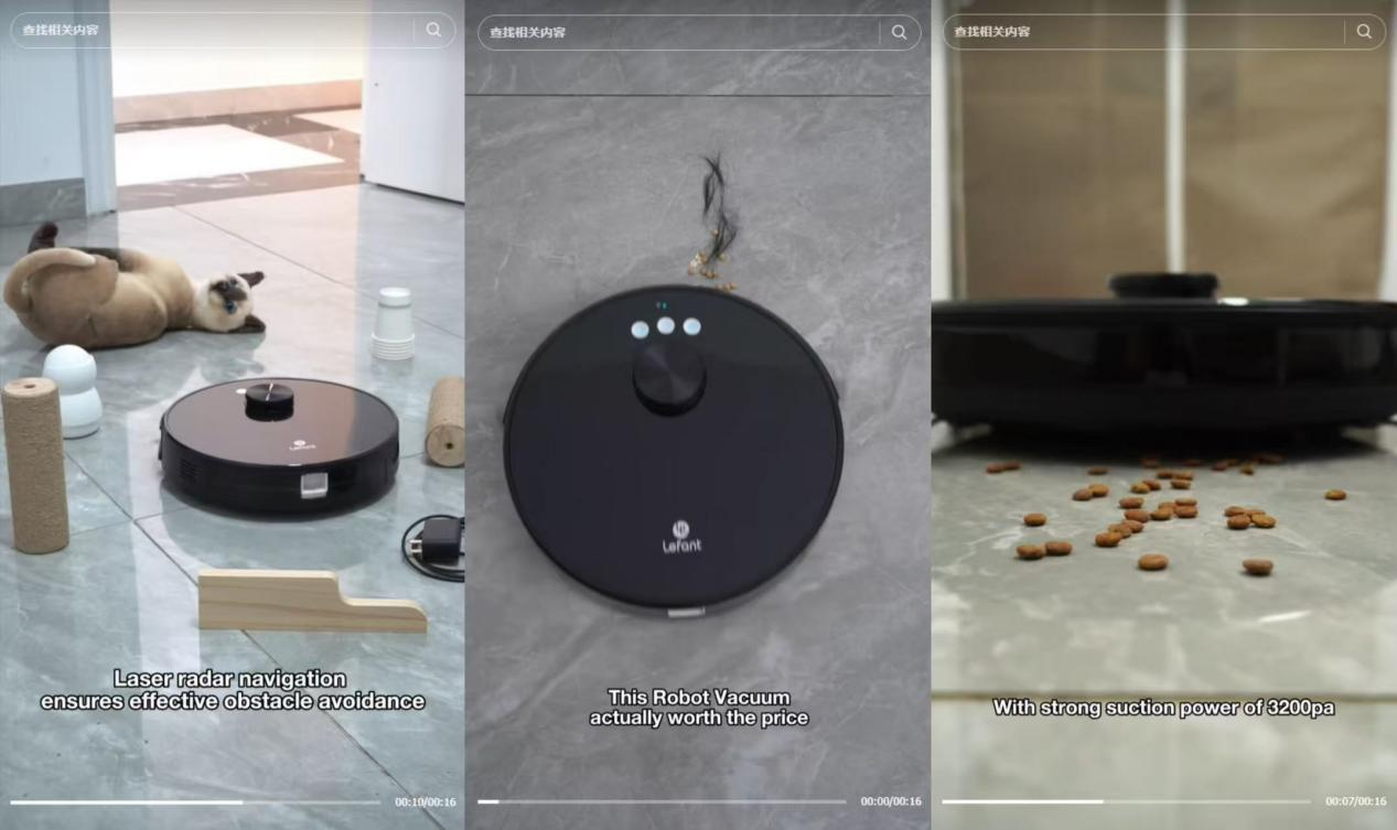 在TikTok短视频平台上面,Lefant品牌的账号内容非常垂直,主要做的是‘宠物家庭清洁’这个细分赛道。他们发布的视频内容就是展示扫地机器人怎么清理猫砂和狗毛,甚至会特意设置些极端情况,比如毛发缠绕的场景,来突出产品强大的吸力功能和躲避障碍物的能力。这样的视频内容吸引大量饲养宠物的人来观看,对于品牌和产品宣传起到了很好的帮助作用。