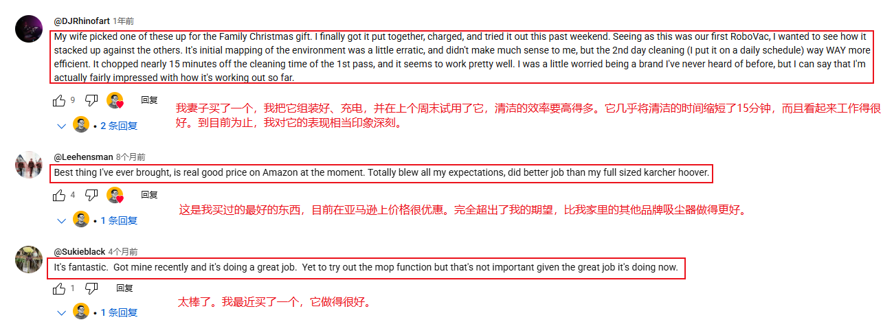 “这是我买过的最好用产品之一的时候,在亚马逊现在这时候价格比较低。而且真的超过了我的预期,比我之前买的别的牌子吸尘器效果都要更好。”