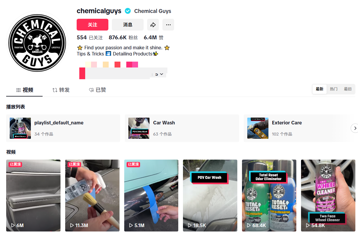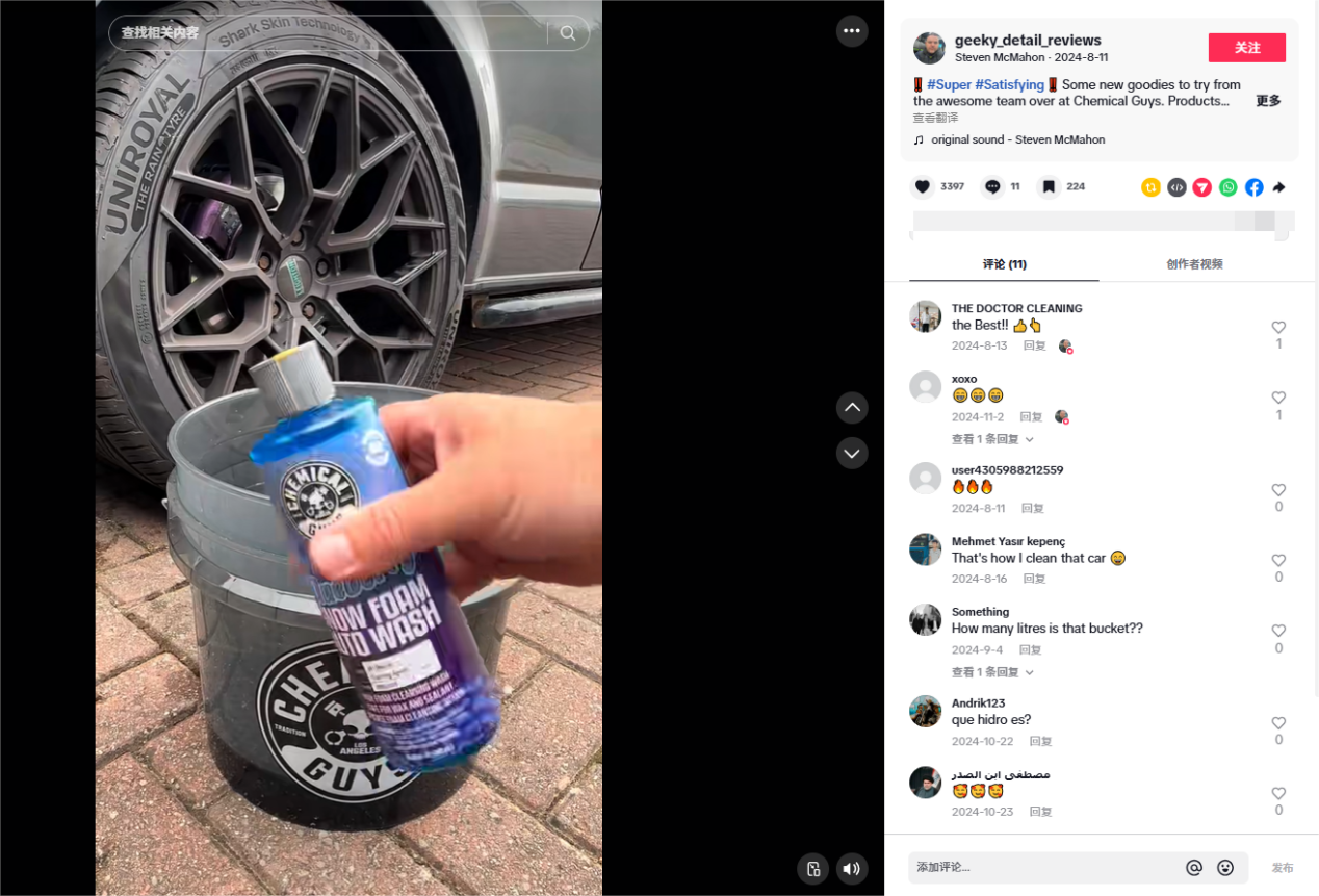 在短视频平台TikTok上,Chemical Guys品牌仿佛是找到了与年轻汽车爱好者对话的绝佳阵地,其官方账号@chemicalguys已积累了超87.6万粉丝。