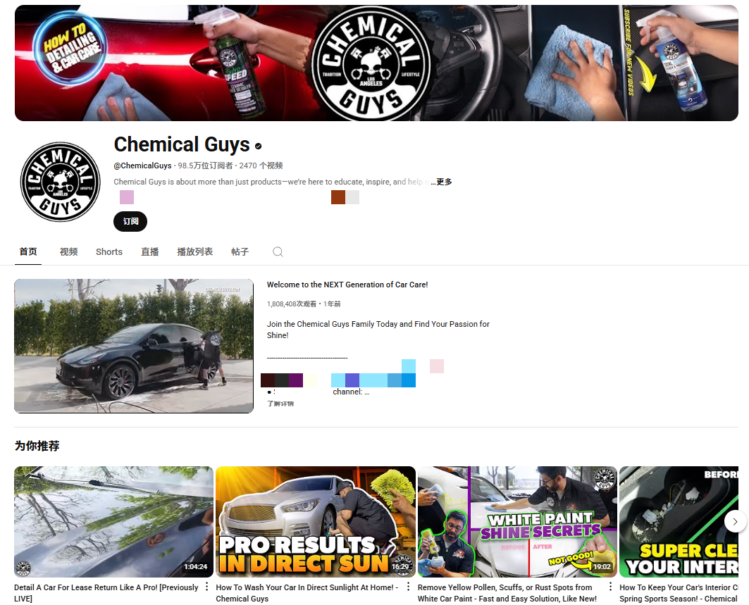 当然,这类内容的效果也很明显,截至目前,Chemical Guys品牌官方账号已经累积了98.5万订阅者,在YouTube平台成功打造出了一片专属内容社群。