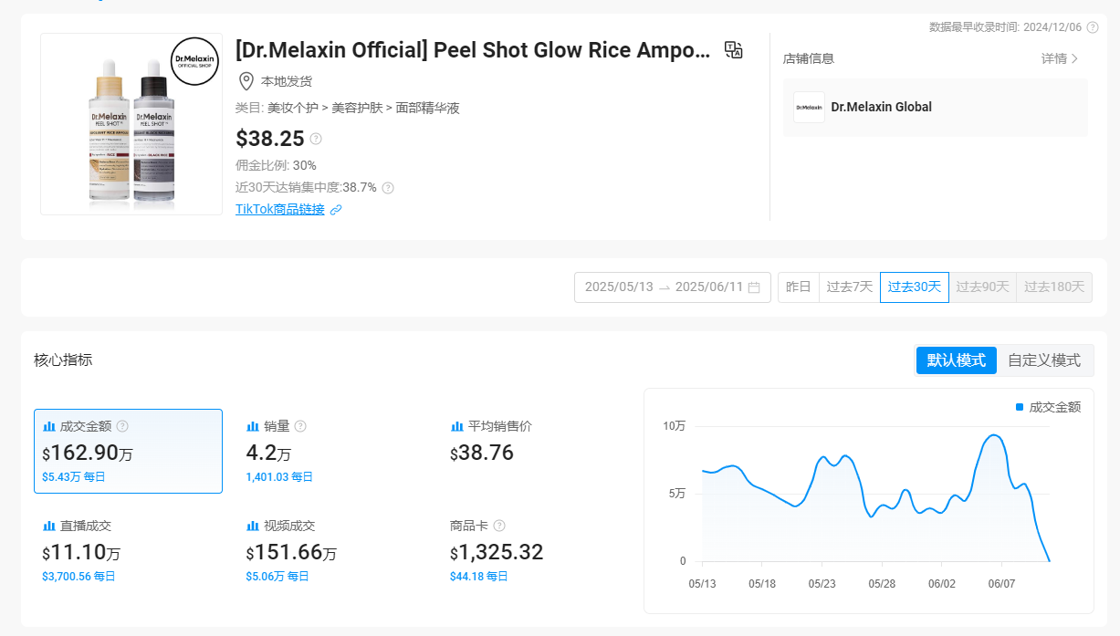 背后出圈的,是一个成立于2021年的韩系品牌Dr.Melaxin。短短3年,这个专注功效护肤的品牌,靠一款温和去角质精华液套组走进12万多位美国消费者的浴室柜,累计GMV达到481万美元。