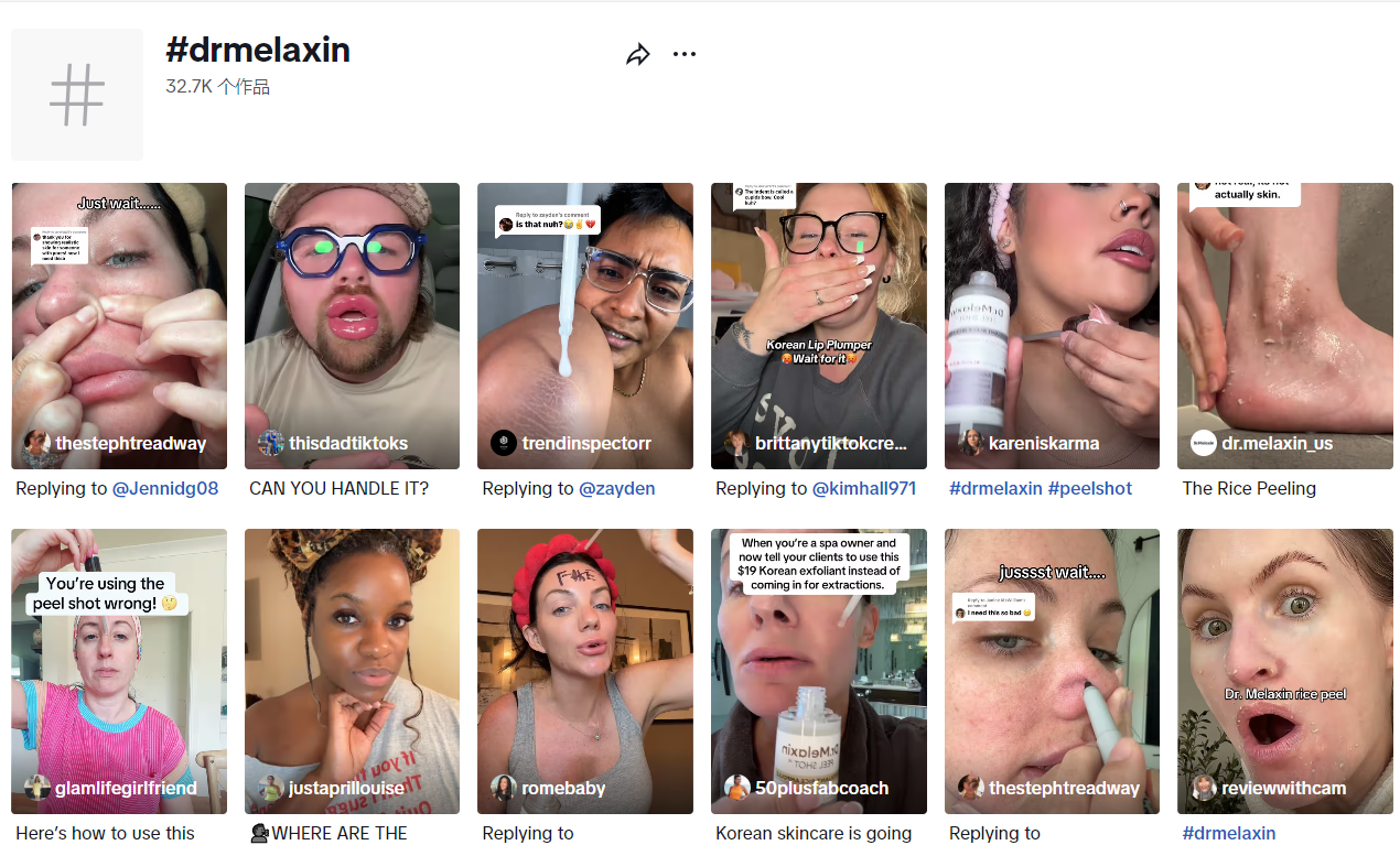 区别在于,Dr.Melaxin成功在“高效护肤”和“温和安全”之间找到平衡,把一款小众细分功能产品,变成了TikTok上的话题产品。这不仅是选品的胜利,更是内容策略与用户理解的胜利。