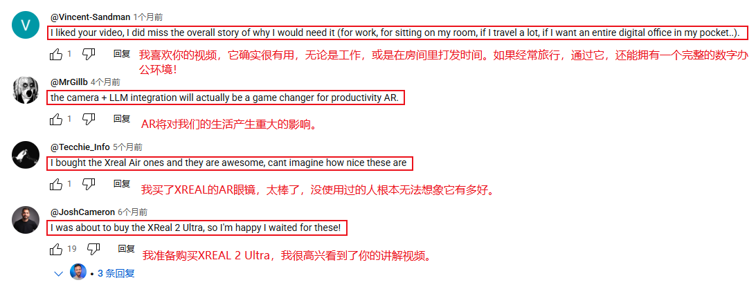 “我准备购买XREAL 2 Ultra,很高兴看到了你的讲解视频。”