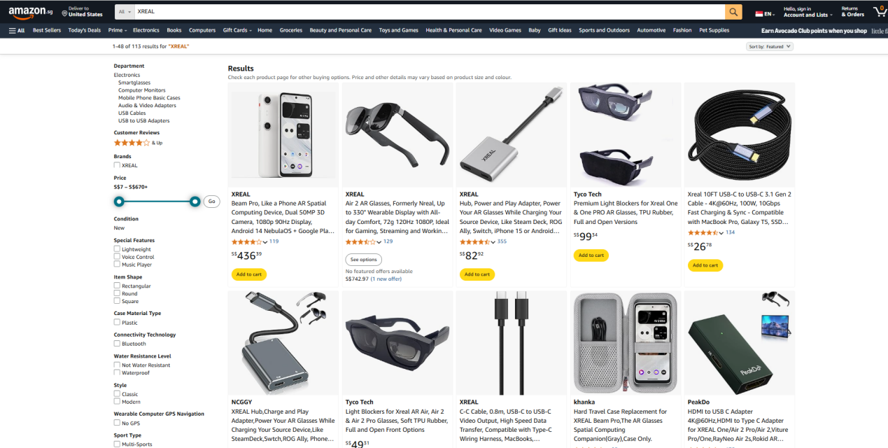 XREAL品牌在亚马逊、eBay等主流电商平台均开设了官方店铺,利用平台的流量优势快速获取用户,同时借助平台的物流和支付体系降低了出海门槛。