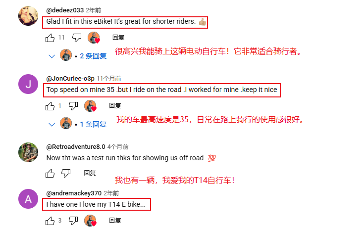 许多用户在看完视频后都表达了对Engwe T14电动自行车的喜爱: