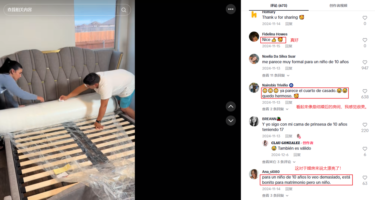 拥有140万粉丝的TikTok家居达人@claugonzalez_official,便为Homary品牌的床品拍摄了开箱组装视频。