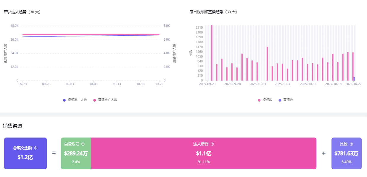 数据显示,在其1.2亿美元的总成交金额中,有91.11%都是来自达人带货。