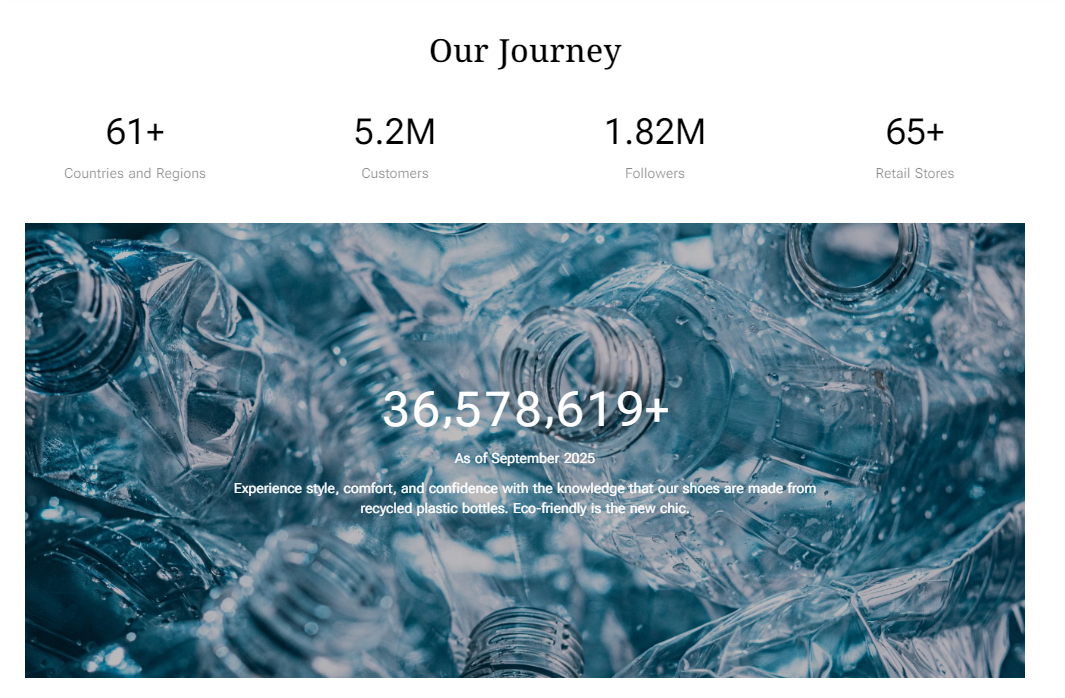而品牌的核心理念恰好呼应了这一点:回收6个塑料瓶,做成一双环保鞋。