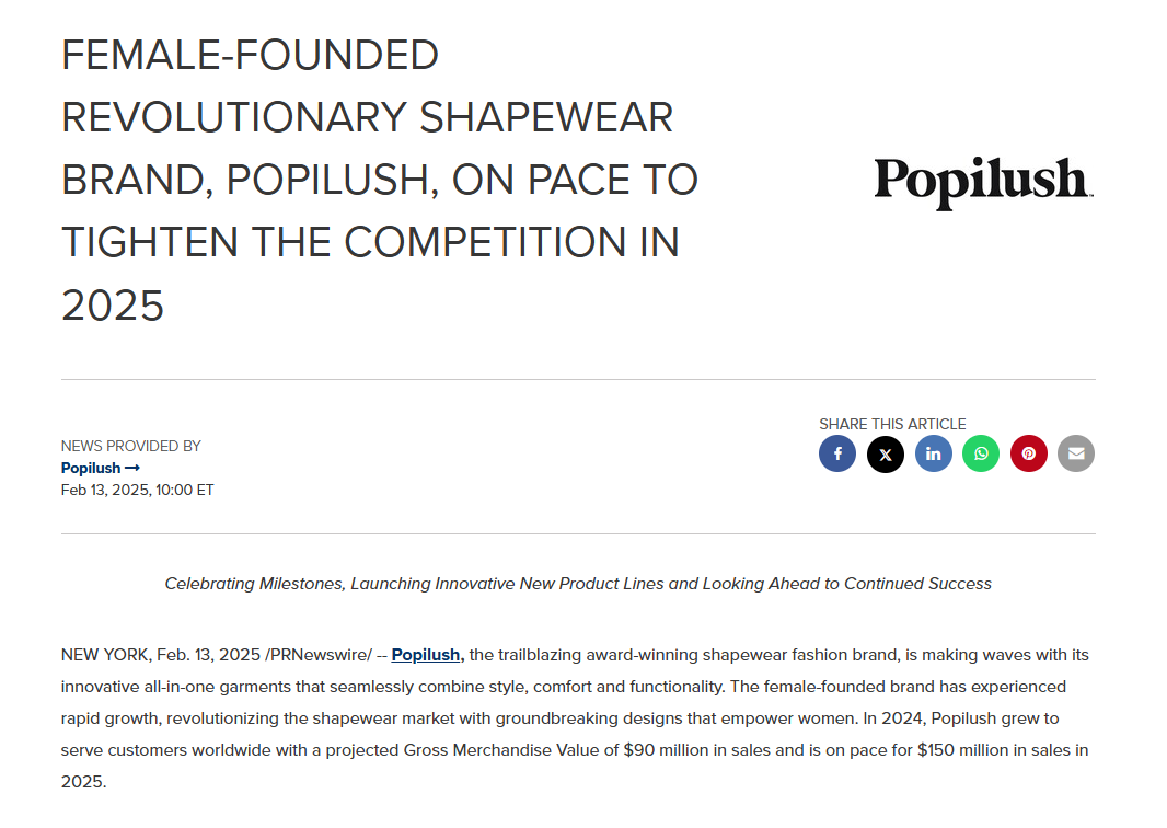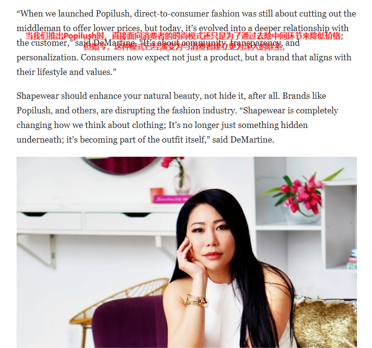 在这样的行业大背景下,Popilush作为一个主打“内置塑形”的女性时尚品牌,以“把塑身衣直接做进连衣裙和日常服饰里”的思路快速蹿红,创始人Eve DeMartine也借此在2025年入选Inc.杂志“Female Founders 500”(女性创始人500强)榜单,成为近年来塑身赛道中颇受关注的创业者之一。