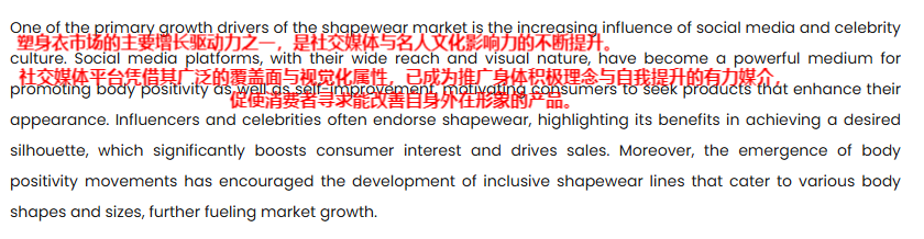 从需求端看,多个市场研究报告都指出,塑身衣从“功能性内衣”正加速向“外穿时尚单品”转型,更强调舒适度、可持续面料和日常通勤/社交场景的适配,而不仅仅是用于礼服或特殊场合。