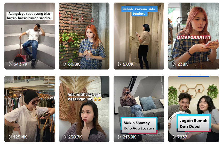 以印尼的本土账号@ecovacs_indonesia为例,当地消费者在浏览社媒平台时,相较于直白的产品功能讲解,更喜欢看真人演绎的生活情景剧,该账号便以此类生活化趣味内容作为创作主线。