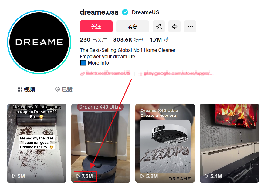 在TikTok上,Dreame品牌建立了自己的品牌账号@dreame.usa,目前有30.36万粉丝,获赞量高达170万,表现很不错。