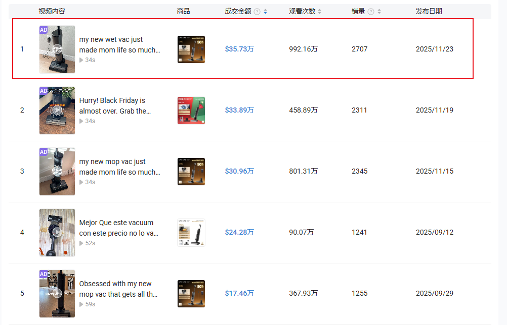 截至目前,这条视频已收获了992.16万次播放,即将突破千万,共带动了2707笔订单,成交金额达35.73万美金。