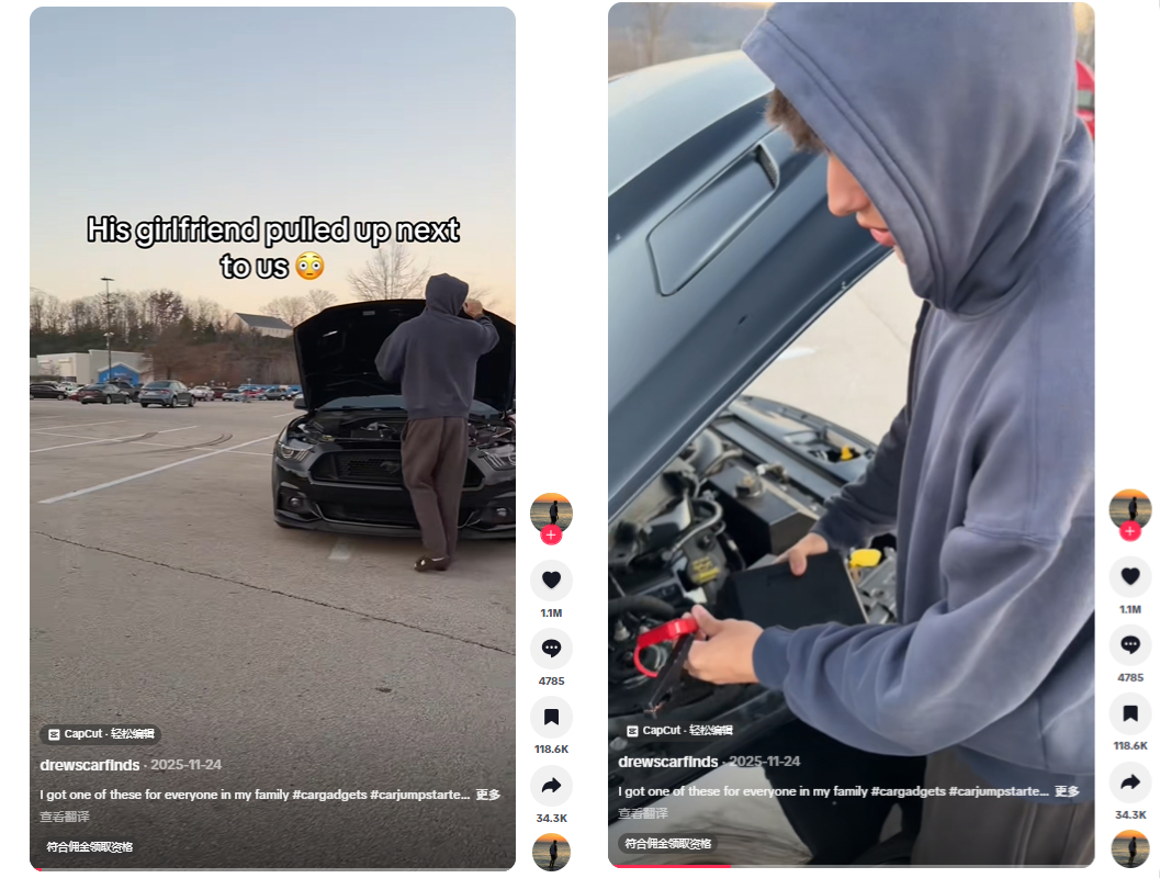 在TikTok美区,汽车应急启动电源、防冻液、挡风玻璃清理刷等产品持续热销,其背后的核心驱动力,正是消费者对于应急自救和行车安全的强烈刚需。
