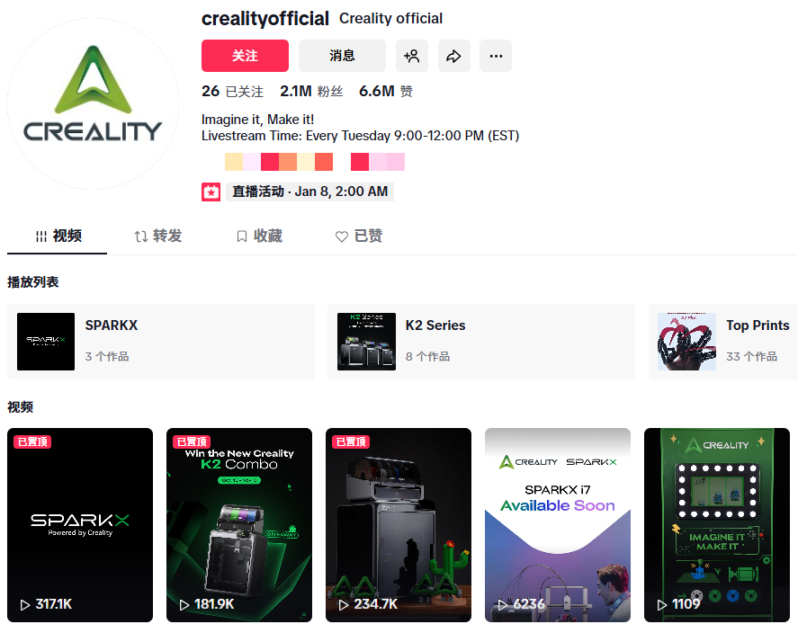 3D打印机客单价动辄数百美元,传统的短视频种草因无法直观展示操作和答疑,转化困难。创想三维通过TikTok直播,精准地构建了“信任转化”路径。