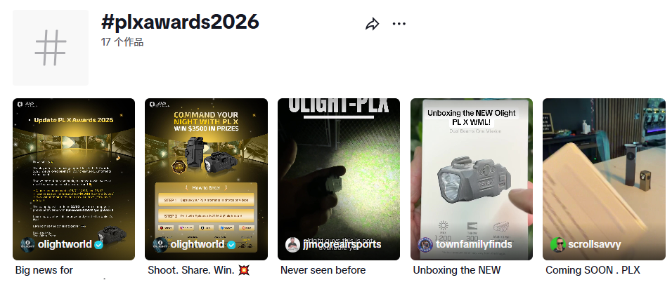 例如,为推广PL X系列产品,它发起#plxawards2026挑战,鼓励用户拍摄创意视频赢取奖金,并授予Olight使用这些内容进行二次传播的权利。
