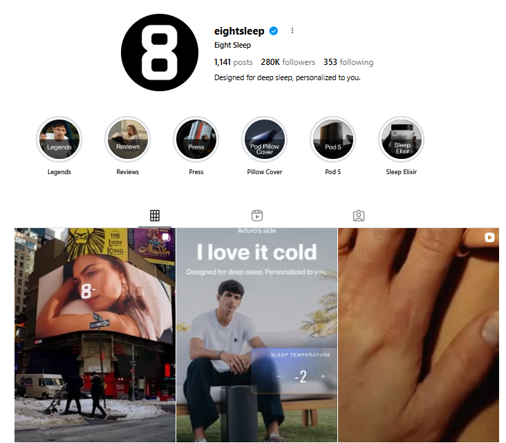 在Instagram,Eight Sleep则更注重情感营销和品牌格调。
